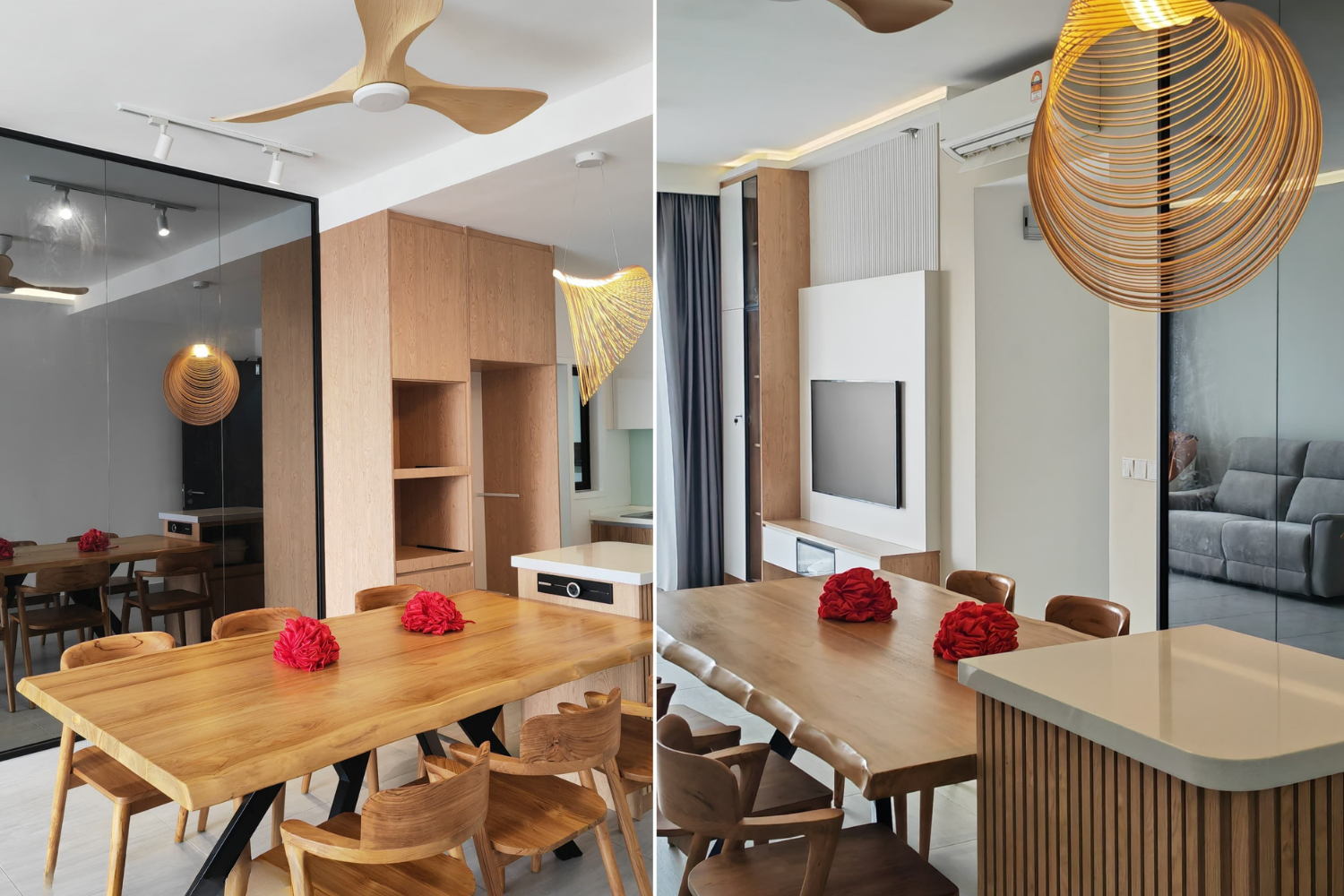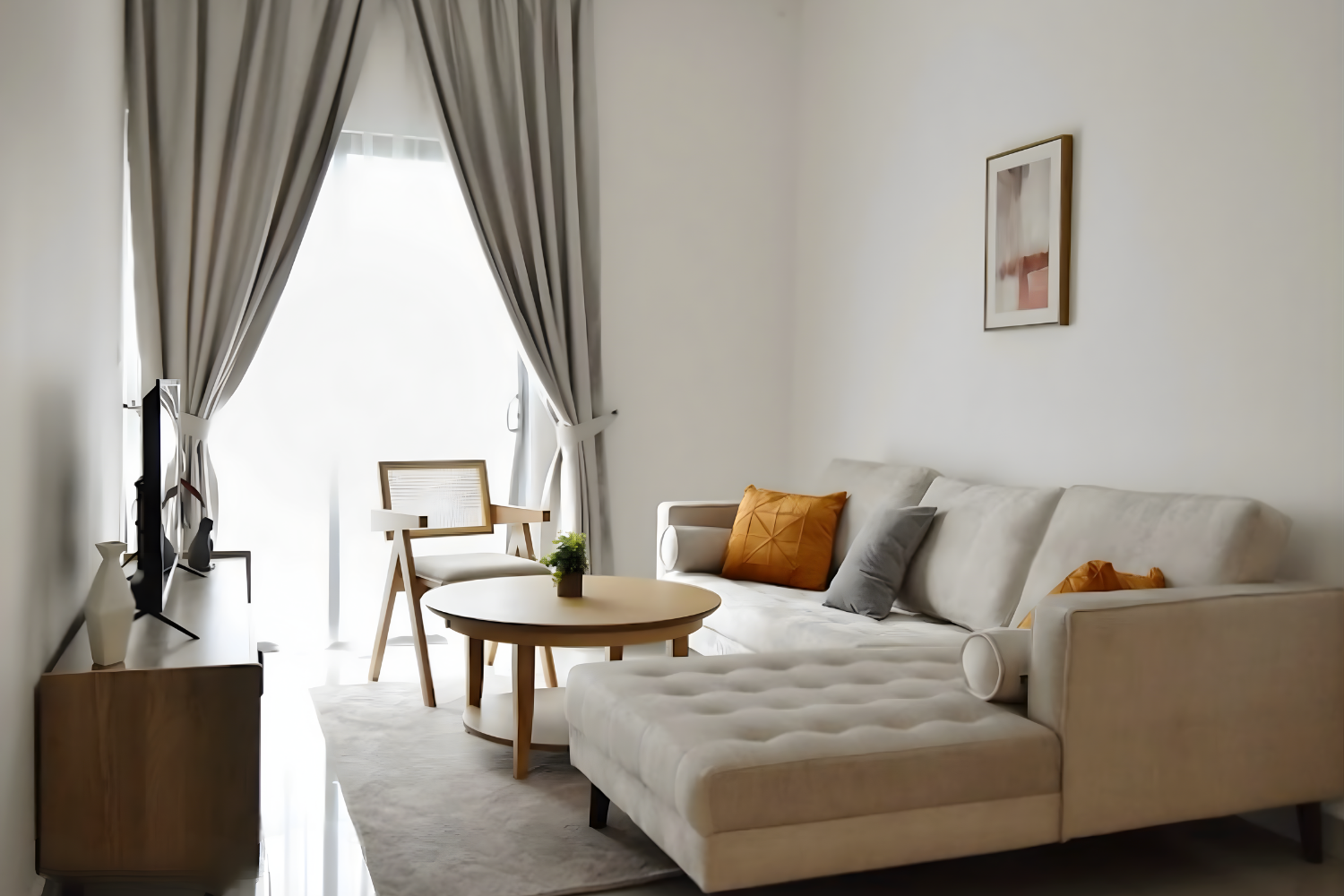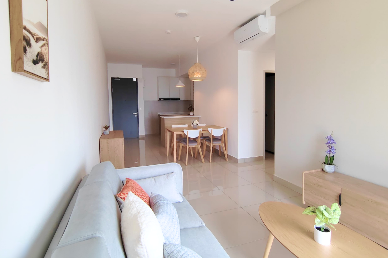 Muji style is all about keeping things simple, natural, and comfortable. The space is clean and uncluttered, using soft neutral colors and natural materials like light wood and linen to create a warm and relaxing feel. Furniture is simple and practical, helping keep everything organized while making the home calm and easy to live in.