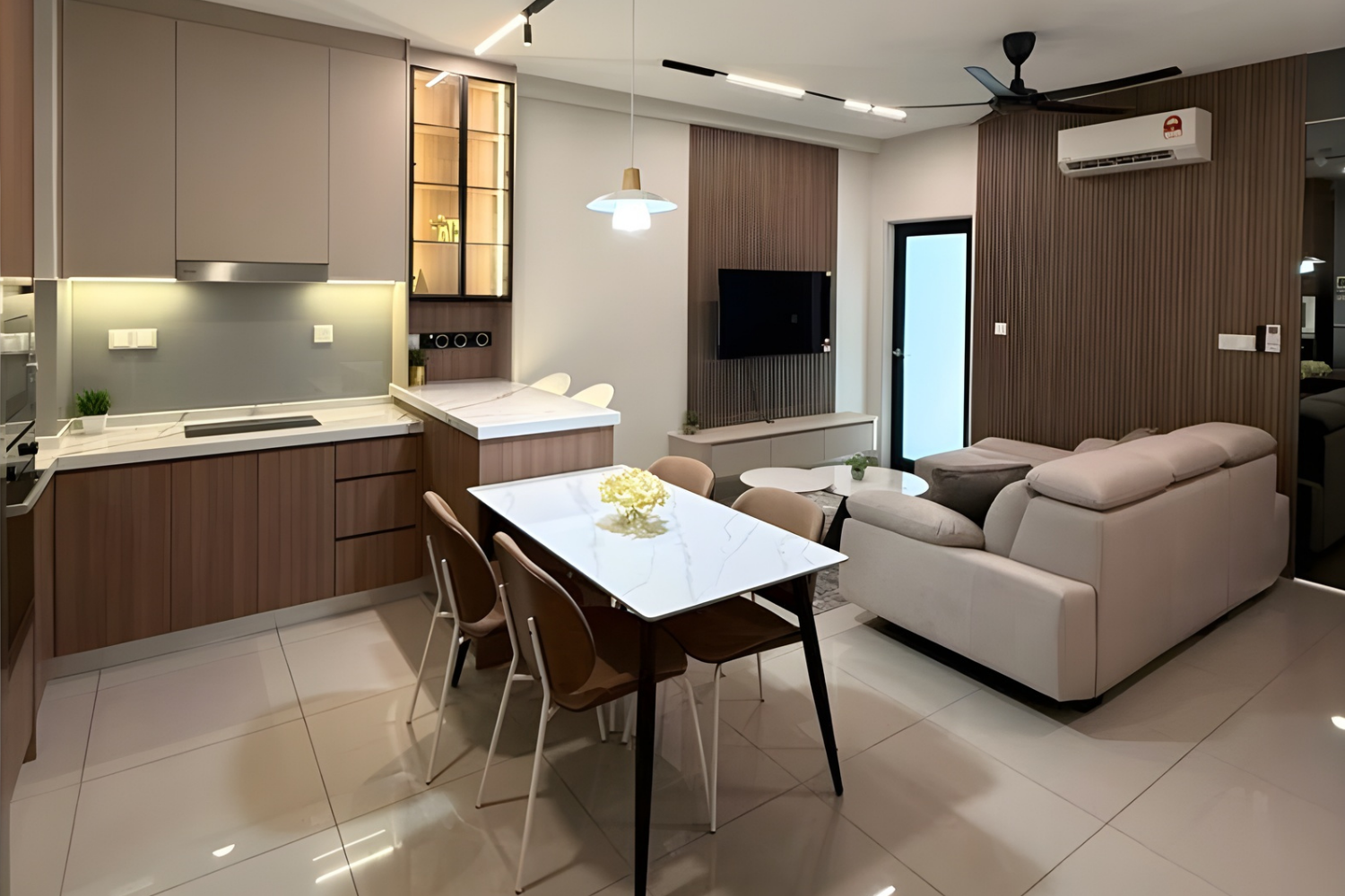 Contemporary style focuses on a clean, modern, and comfortable look. It uses simple shapes, neutral colors, and a mix of materials like glass, metal, and wood. The style feels fresh, stylish, and uncluttered, creating a space that is both elegant and easy to live in.